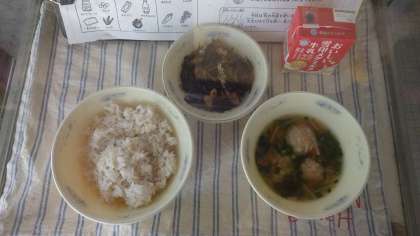 今日は、とりひき肉とまぐろフレークを使って給食室で一つ一つ丸めてつみれを作りました。手作りのつみれのふわふわとした食感を楽しみながら食べてほしいと思います。