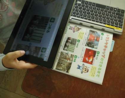 文章にまとめるために、タブレットを使って図鑑を写真に撮ったり、メモをしたりしています。