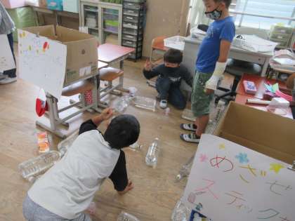 生活科「あそんでためしてくふうして」の学習のまとめとして、あそびランドを開催しました。