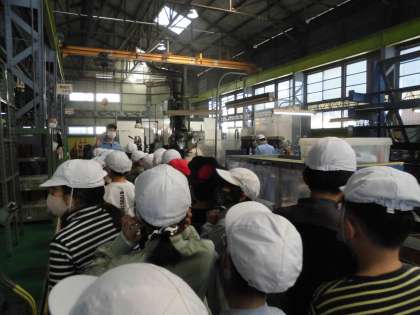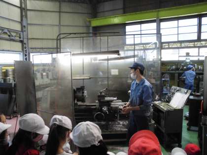 工場内では、実際にオートリールや機械を使っているところを見せてもらったり、質問をしたりしました。子どもたちは、工場見学を意欲的に取り組むことができました。