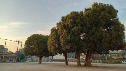 夕暮れとクスノキの組み合わせ…。実は一番のお気に入りです!