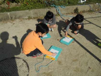 むしめがねをつかって、たいようの光をあつめました。光をあつめることで明るさや、あたたかさはどうのなるかをしらべました。