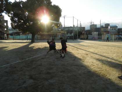 「サッカー部」の56年生は今日も寒い中がんばって、パス回しや試合を楽しみました。6年生は卒業まで残り数回。思い出の運動場で最後までがんばります。