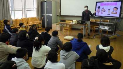 今日は6年生が身体計測を行いました。身体計測の前に、姿勢をよくすることについての話も聞きました。