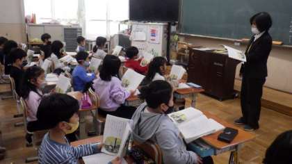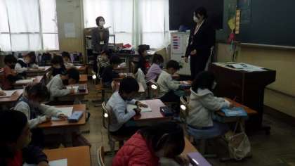 1年生は国語の物語文「たぬきの糸車」の学習の様子を参観していただきました。