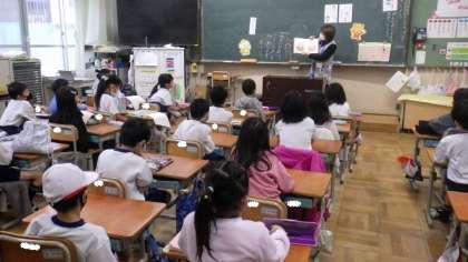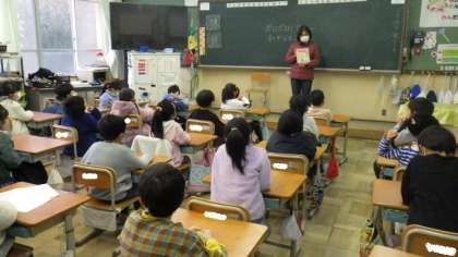 読み聞かせボランティアの皆様が読み聞かせをしてくださいました。今日は1年生の教室でしてくださいました。お話の続きがどうなるか、楽しみな様子で読み聞かせを聞いていました。