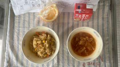 今日のカレーピラフは、まぐろフレーク・コーン・たまねぎ・にんじん・米を使い、給食室の大きなかまでたきました。