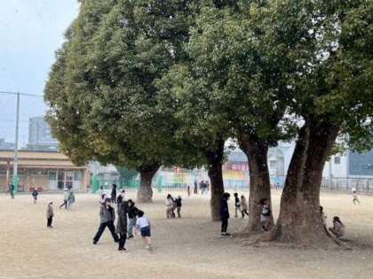 中間休みも雪が降っていました。子どもたちは元気に外で遊んでいました。