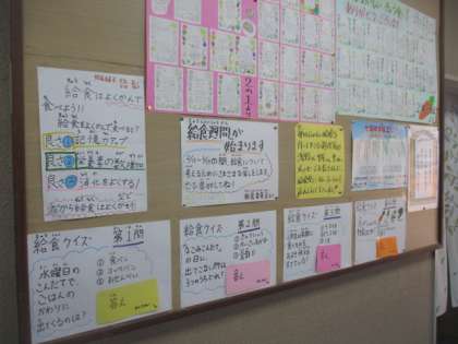 給食委員会の子どもたちが,ポスターを貼ったり放送でクイズをしたりして,食について楽しく学べるように工夫してくれています。