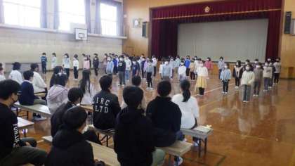 「6年生をおくる会」で3年生は、言葉と歌で6年生の卒業を祝いました。きれいな歌声で歌っていました。