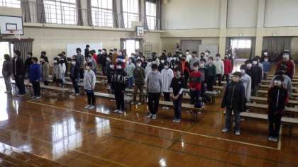 今日から卒業式練習を始めました。今日は式の流れを確認しながら、国歌斉唱・校歌斉唱、起立・着席などの練習をしました。