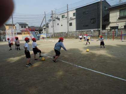 来週は、コートを作ってボールけりゲームに取り組みます。楽しみですね!晴れますように!