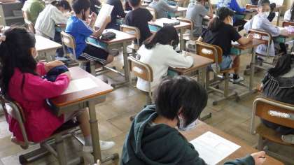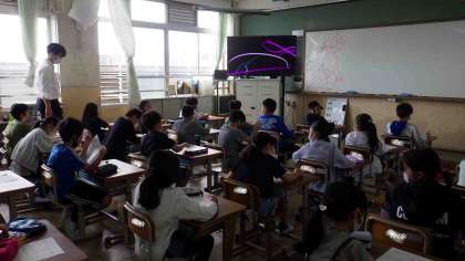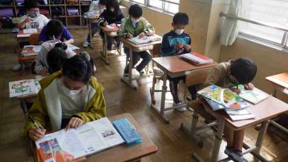 4年生の学習の様子です。配られた教科書に丁寧な字で名前を書いたり、自己紹介カードをかいたりしました。