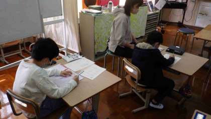 ドリルを使って漢字の学習をしたり、ひらがなについての本を楽しく読んだりしています。