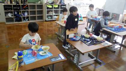 1年生の給食の様子です。今日もたくさん「おいしい」という声を聞きました。おかわりをしている子どもたちもいました。