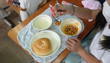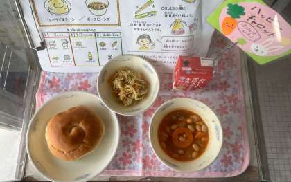 ポークビーンズにハッピーキャロットが入っていて、子どもたちは喜んで食べていました。