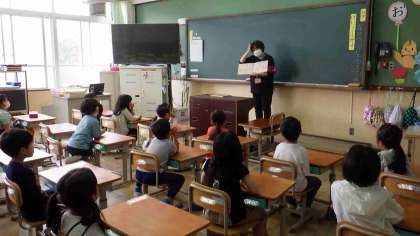 読み聞かせボランティアの皆様が、1年生の教室で読み聞かせをしてくださいました。楽しいお話や大型絵本などを読み聞かせしてくださいました。