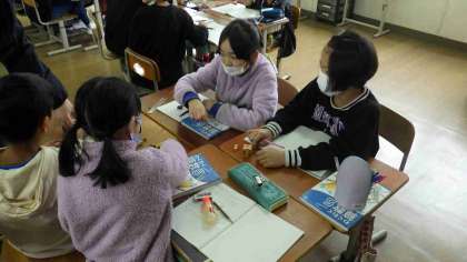 1立方センチメートルのキューブを使って、実際に組み立てながら体積について考えています。