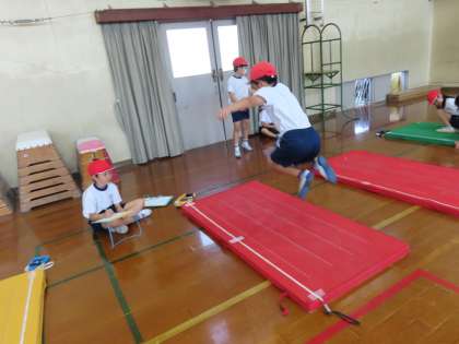 この機会に、どの角度に投げれば同じ力でも飛距離が伸びるのかを学習したり、大きく跳躍するための体の動かし方を学んだりしました。