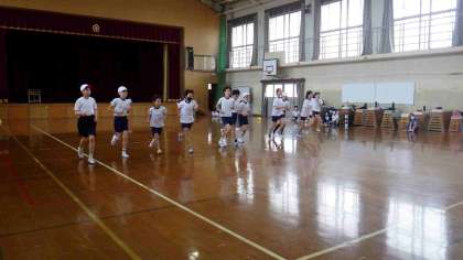 今日は6年1組が体育館でシャトルランを行いました。最後まで一生懸命走っていました。