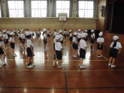 先日は、体育館で1組2組合同の体育を行いました。準備運動後、体を使ったじゃんけんをしたり、ボールを使ったゲームをしたりしました。子どもたちは楽しんで体を動かしていました。