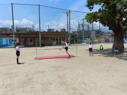 体育では、走り高跳びをしています。