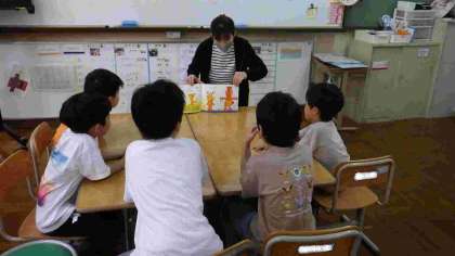 読み聞かせボランティアの皆様がしいのみ学級の教室で読み聞かせをしてくださいました。さかさま言葉のお話を楽しみながら聞いていました。