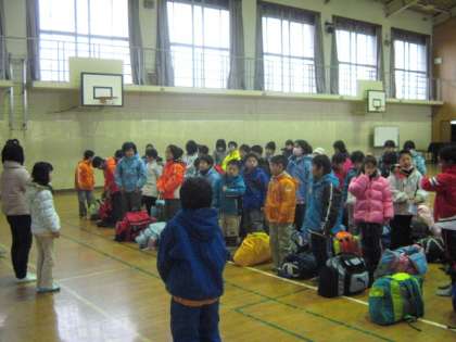 4年生が花背山の家に出発しました。数名のお休みがあるのが残念ですが,7日(火)から9日(木)の二泊三日の行程で雪山でのたくさんの体験をする予定です。
