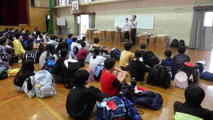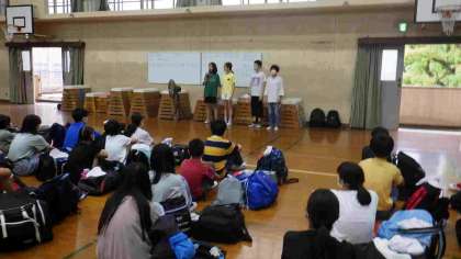 雨のため、体育館で出発式を行いました。6年生らしく、立派な態度で式にのぞんでいます。