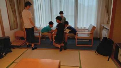 きれいな宿泊施設に子どもたちも目がきょろきょろと興味津々です。部屋に入ってしばしくつろぎます。