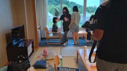 午後5時からお風呂の時間ですが、待ち時間を使って、カメラマンの方が部屋ごとに写真を撮ってくださっています。
