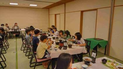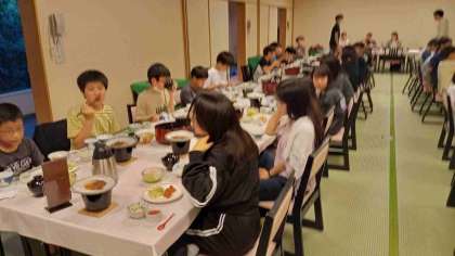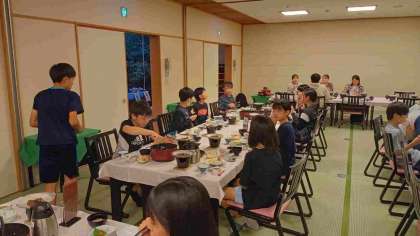 一日たくさん活動したので、お腹もペコペコです。おかわりしてたくさん食べています。