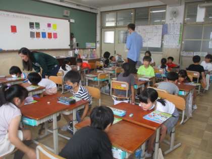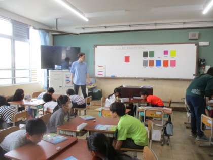 ALTのアンドリュー先生と一緒に,外国語活動を楽しみます。
