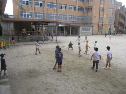 大なわ跳びをしたりボール遊びをしたり鬼ごっこをしたり…