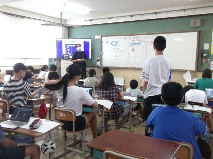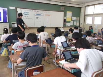 一筆書きで図形を描くことができるのか考え、ロイロノートを使って交流しました。