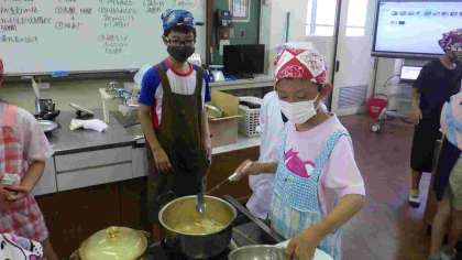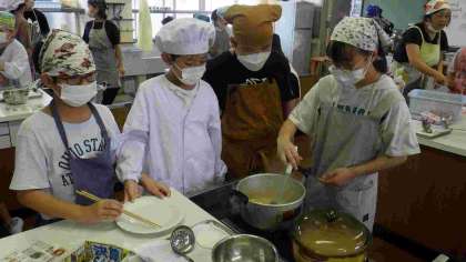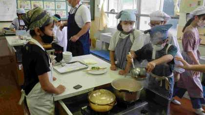 今日は5年2組がご飯とみそ汁の調理実習をしました。班の友達と役割を分担し、協力して作っていました。