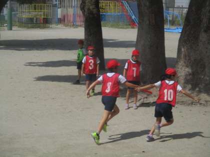 なかなか難しいバトンパスですが,練習を重ね,見事にスムーズなバトンパスが決まりました!