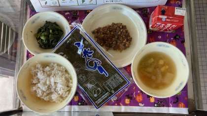 今日の給食カレンダーでは、「納豆(なっとう)」について紹介しました。