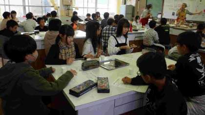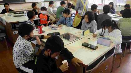 今日は栄養教諭の先生に「だし」についての話を聞いたり、こんぶだしやかつおだしなどを飲み比べたりしました。