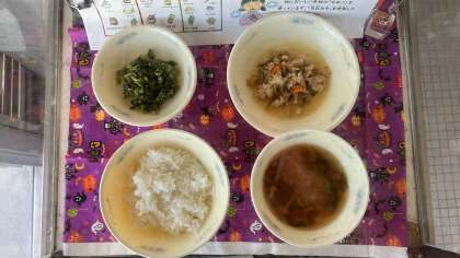 13日(金)和献立「とりめし(具)」「なめこのみそ汁」