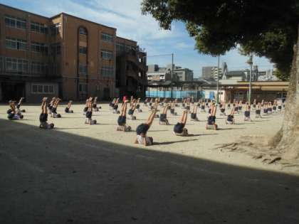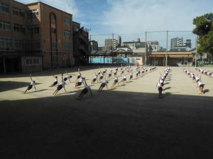 スポーツ大会に向けて、団体演技に取り組みました。少しずつみんなとそろいはじめ一体感がでてきました。当日が楽しみです。