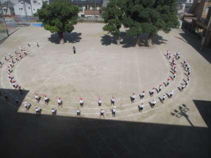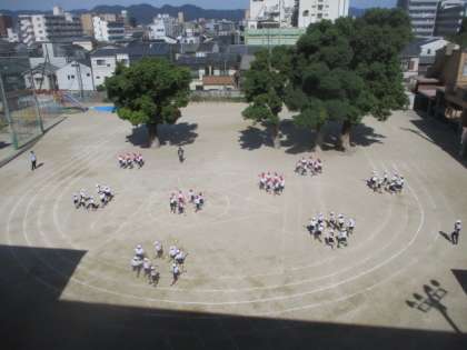 2年生の団体演技。3Fから見るとこんな感じです。