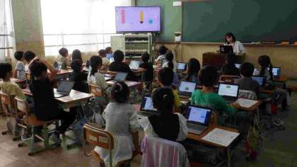 2年生がタブレットを使った学習をしています。
