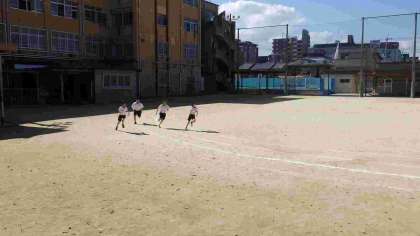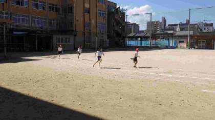 4年生がスポーツ大会の徒競走・80m走の練習をしています。