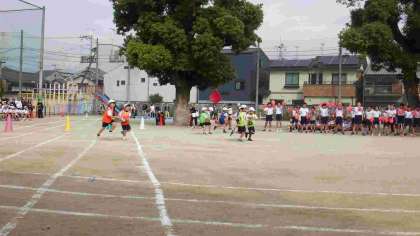かわいらしいダンスの後は、ボール運びリレーを元気いっぱい行いました。