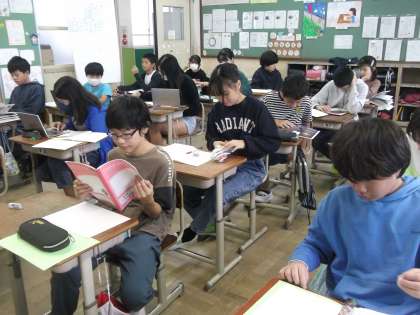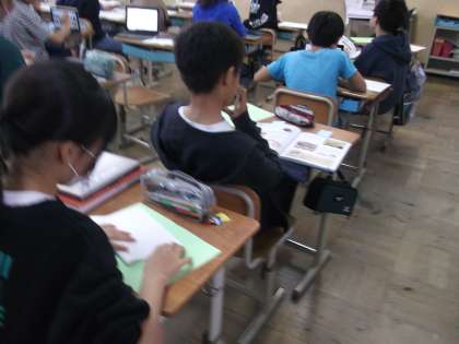国語の学習で、日本文化を発信するためにパンフレット作りをしています。