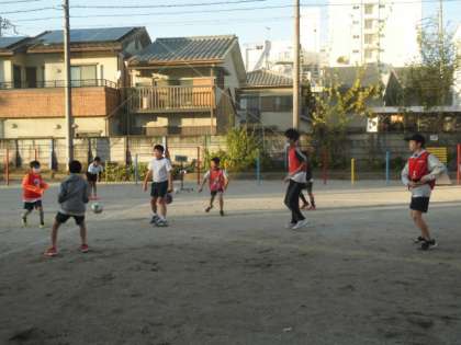 サッカー部は全市交流会後もがんばって活動をしています。今日は寒い中でしたが、みんなシュートをきめるぞと協力をして一生懸命がんばりました。