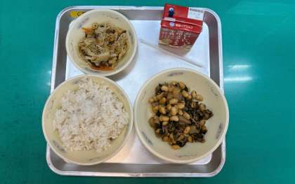 給食には「地球にやさしい食事」がたくさん登場しています。今月をきっかけにあらためてそのよさに目を向けてほしいと思います。
