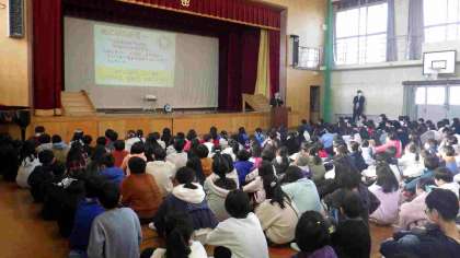 校長先生からは、「よい すがたを つづける、よい すがたは まねる、よい すがたは ひきつぐ」ことについての話がありました。今年度の残り3ヶ月も良い姿を続け、真似をし、引き継いで、良い学校にしていきましょう。