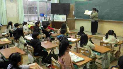読み聞かせボランティアの皆様が1年生の教室で読み聞かせをしてくださいました。干支の話や体の不思議など、いろいろなお話を楽しみました。